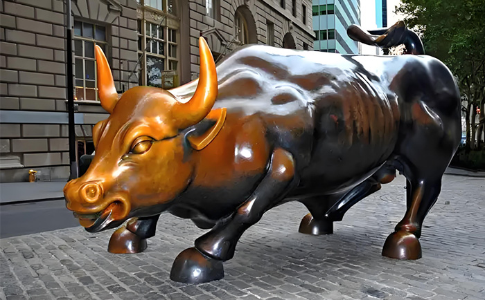 紐約曼哈頓的華爾街銅牛,無疑是全球最具影響力的銅牛雕塑之一。這尊由意大利裔藝術(shù)家阿爾圖羅?迪?莫迪卡創(chuàng)作于 1989 年的作品,重達(dá) 3.2 噸,以肌肉虬結(jié)的軀體、昂首前沖的姿態(tài),成為 “牛市” 的象征。其誕生背景頗具傳奇色彩:在 1987 年美股崩盤后,藝術(shù)家自掏腰包 36 萬美元鑄造銅牛,連夜安放在紐約證券交易所前的圣誕樹下,寓意 “經(jīng)濟(jì)復(fù)蘇”。盡管初期因 “非法放置” 引發(fā)爭議,但民眾對它的熱愛最終讓其落戶于百老匯大街,成為紐約的城市名片。2009 年,中國國旗首次在銅牛旁升起,見證了中美關(guān)系的深化;而 2019 年的搬遷計(jì)劃,則引發(fā)了全球?qū)ζ湮幕瘍r值的再思考。這尊銅牛不僅是金融市場的晴雨表,更傳遞著逆境中昂揚(yáng)向上的信念。